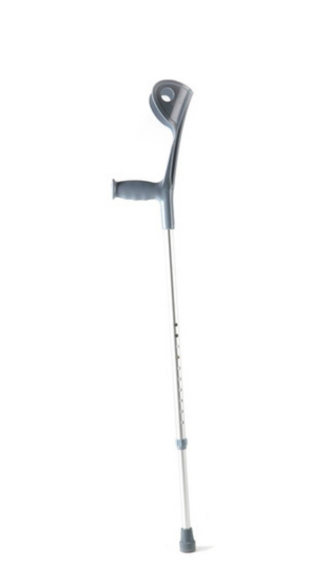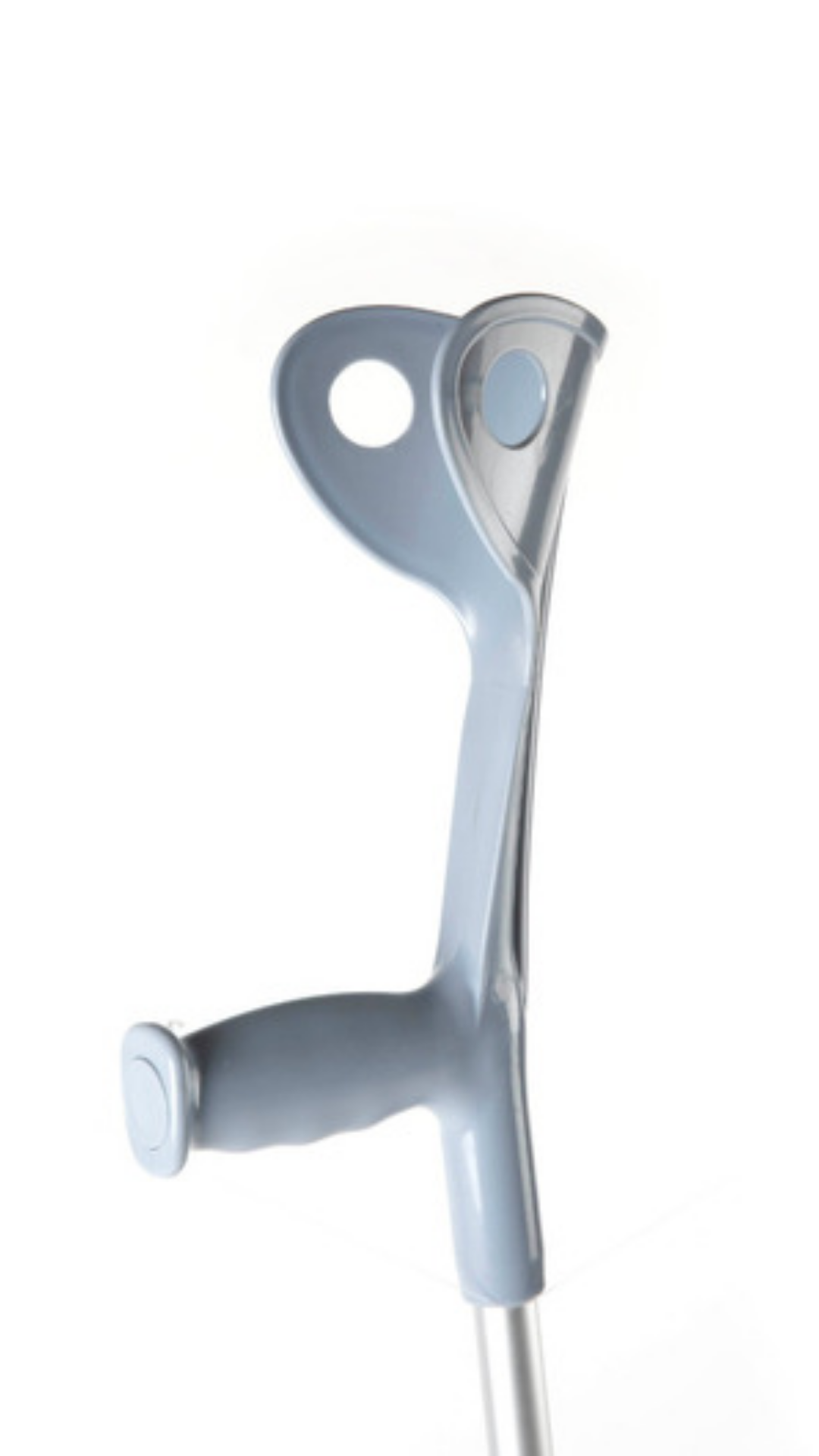 Con cinco alturas regulables y un apoyo en el antebrazo, el bastón canadiense es una excelente ayuda a la marcha del paciente.