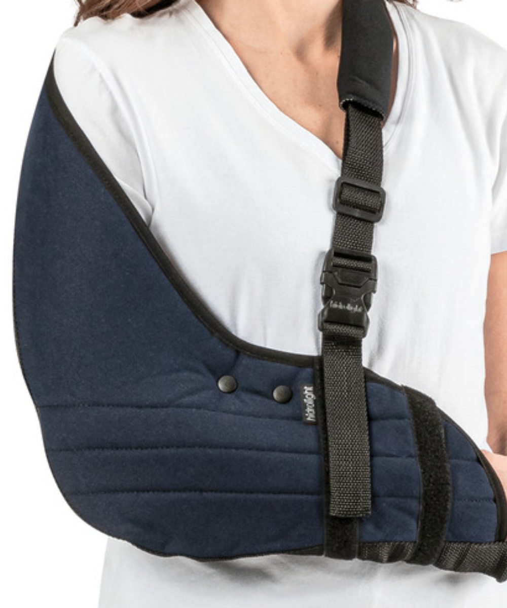 Cabestrillo diseñado para brindar comodidad y soporte en casos de inmovilización de clavícula, hombro y brazo tras fracturas, leceración o post-operatorios.