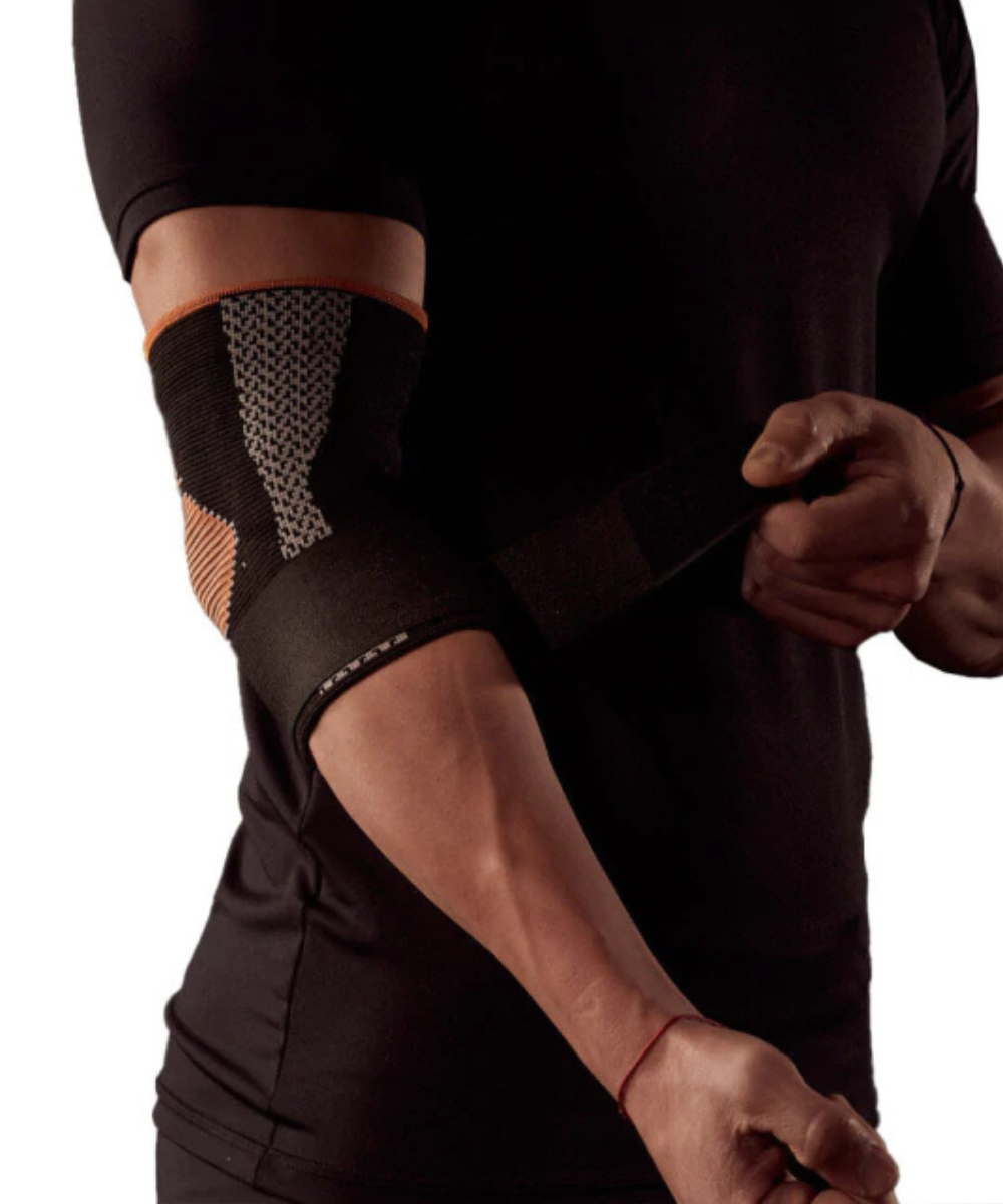 La banda de ajuste con abrojo, aporta fuerzas adicionales de compresión. Puede ser utilizada en ambos codos.